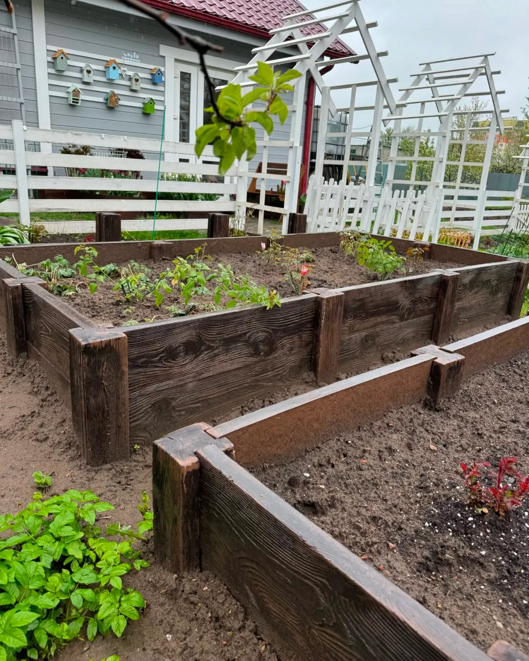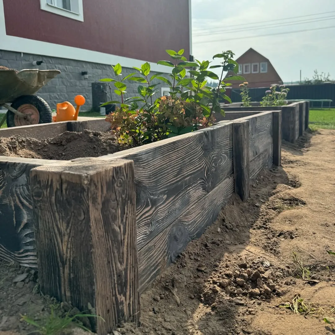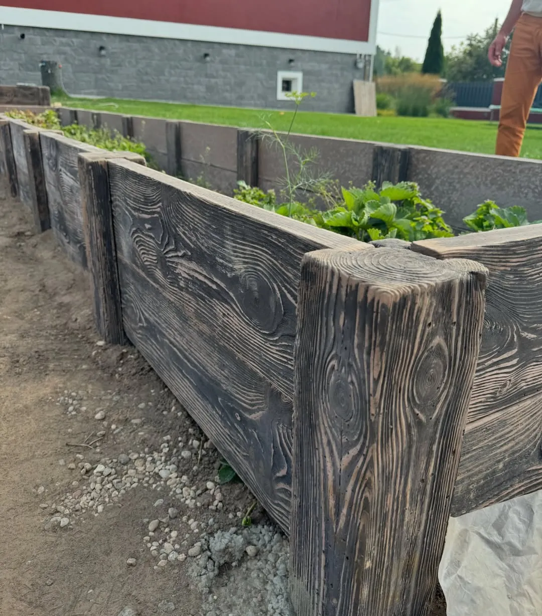 Изделия из бетона WOODSTONES.BY – изделия из декоративного искусственного камня под дерево. Доска тротуарная + заборный столбик. Столбы + доска тротуарная. Сезон вот-вот начинается позаботьтесь заранее о своем участке. Самое время обновить ваш огород, планируйте заранее, что бы успеть в этом году. Цветник вместо грядки. Клумбы стандартный набор для вашего участка. Клумба из доски тротуарной и заборного столбика.
