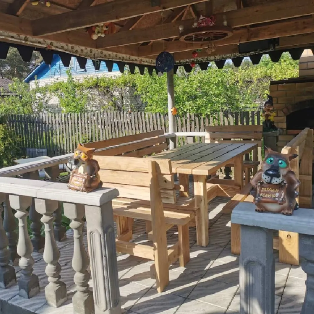 Мебель для сада из массива дуба, сосны, тика. Столы, стулья, кресла, скамейки, лавочки, наборы садовой мебели. Мельницы, кашпо, будки для собак, декоративные телеги.