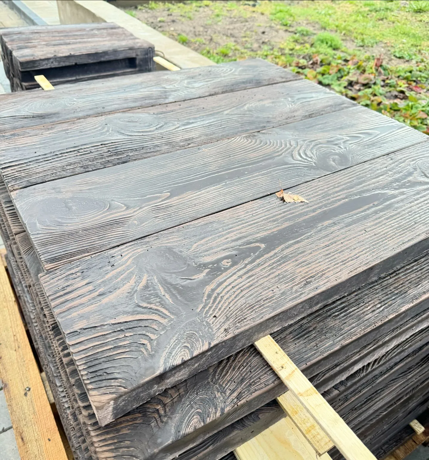 Доска тротуарная качественно имитирует состаренную доску и торцовый спил. Применяется для ландшафтного оформления, отделки дорожек, пола беседки и барбекю. Превосходно сочетается с домами, выполненными из бруса и дерева и другими деревянными постройками.